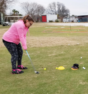 Summer registration is now open, and one of the very first participants to register for our summer season was Lilian Ducker.  Lilian has been with The First Tee for almost five years, and she is currently at the Birdie level.  She started the program when her grandfather read about The First Tee in the newspaper.  He enrolled her younger brother, and as soon as she saw him playing, she knew she wanted to try it! She is 13 years old and lives in Moncks Corner.  She is home schooled and in seventh grade.  In addition to playing golf, she enjoys playing guitar, soccer, drawing, singing, reading, and going to see her favorite bands live!  She even hopes to do something with music when she gets older. She is a student of Coach Wayne at Patriots Point Golf Links in Mount Pleasant and says that perseverance is her favorite Core Value.  “There are many times it would be easier to just quit, but making myself keep trying gets me through,” says Lilian.  She has persevered all the way to the Birdie level, many times even being the only girl in her Par or Birdie level class! Lilian also attends all of our LPGA-USGA Girls Golf events at Patriots Point Golf Links, and she loves that at The First Tee she gets “to play golf and meet new people!” Congratulations on your selection as Participant of the Month, Lilian!  If you have a child who would like to enroll in our summer programs, please click here to view the full summer schedule, or if you have a young lady interested in LPGA-USGA Girls Golf events, please click here to submit a free registration.