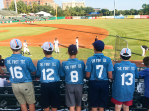 The PGA Jr League is a program where junior golfers have the opportunity to enjoy their first team golf experience.  Playing in a 2-player captain’s choice format, juniors take turns playing with and caddying for their group.  The program encourages sportsmanship, promotes mentorship, and builds confidence. For the last three summers, The First Tee of Greater Charleston has participated as its own team in the Charleston region, competing against teams from area public and private golf courses.  Our team is open to participants at the Advanced PLAYer, Par, and Birdie levels, who are between the ages of 8 and 13.  This summer, we had so much demand for the PGA Jr League that we created two teams who each competed in matches at fantastic courses like the Country Club of Charleston and Kiawah’s River Course.  Participants earned flags for winning their 3-hole matches as well as showing teamwork, respect, and responsibility. Thank you to all of families who sent in photos from this season’s matches and practices!To end the season, PGA Jr League players had the chance to attend a Riverdogs game with their families earlier this month.  All players were even down on the field, high-fiving players before the game! If your child is at the Advanced PLAYer, Par, or Birdie level and interested in joining PGA Jr League, be on the lookout for registration information in the spring of 2019!