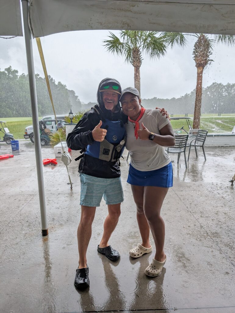 Maya prefers to play 100 holes in crocs, as seen with First Tee – Greater Charleston CEO (and Maya’s former coach) Bucky Dudley in 2023 and 2024.